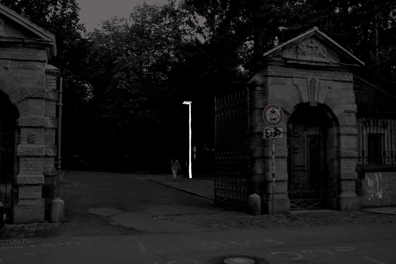 Der Leipziger Friedenspark bei Nacht: Während sich die Laternen auf den naheliegenden Straßen anschalten, bleibt es hier dunkel. Der Park liegt dabei nicht in irgendeinem Randgebiet, sondern südöstlich des Zentrums der sächsischen Großstadt. An der Ostseite des Parks führt mit der mehrspurigen Prager Straße eine wichtige Verkehrsachse vorbei.